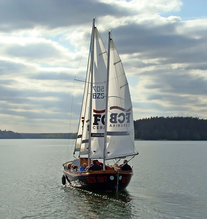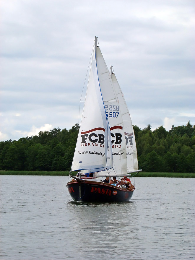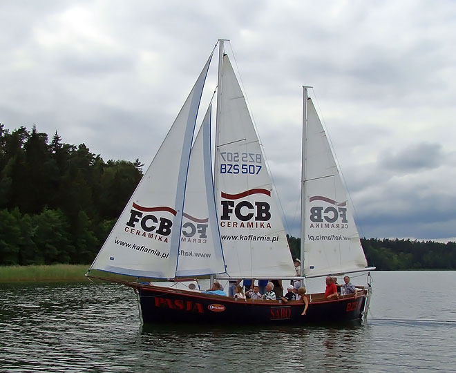 Zobacz zdjęcia dużego jachtu dostępnego w ofercie czarteru na jeziorze Wigry.